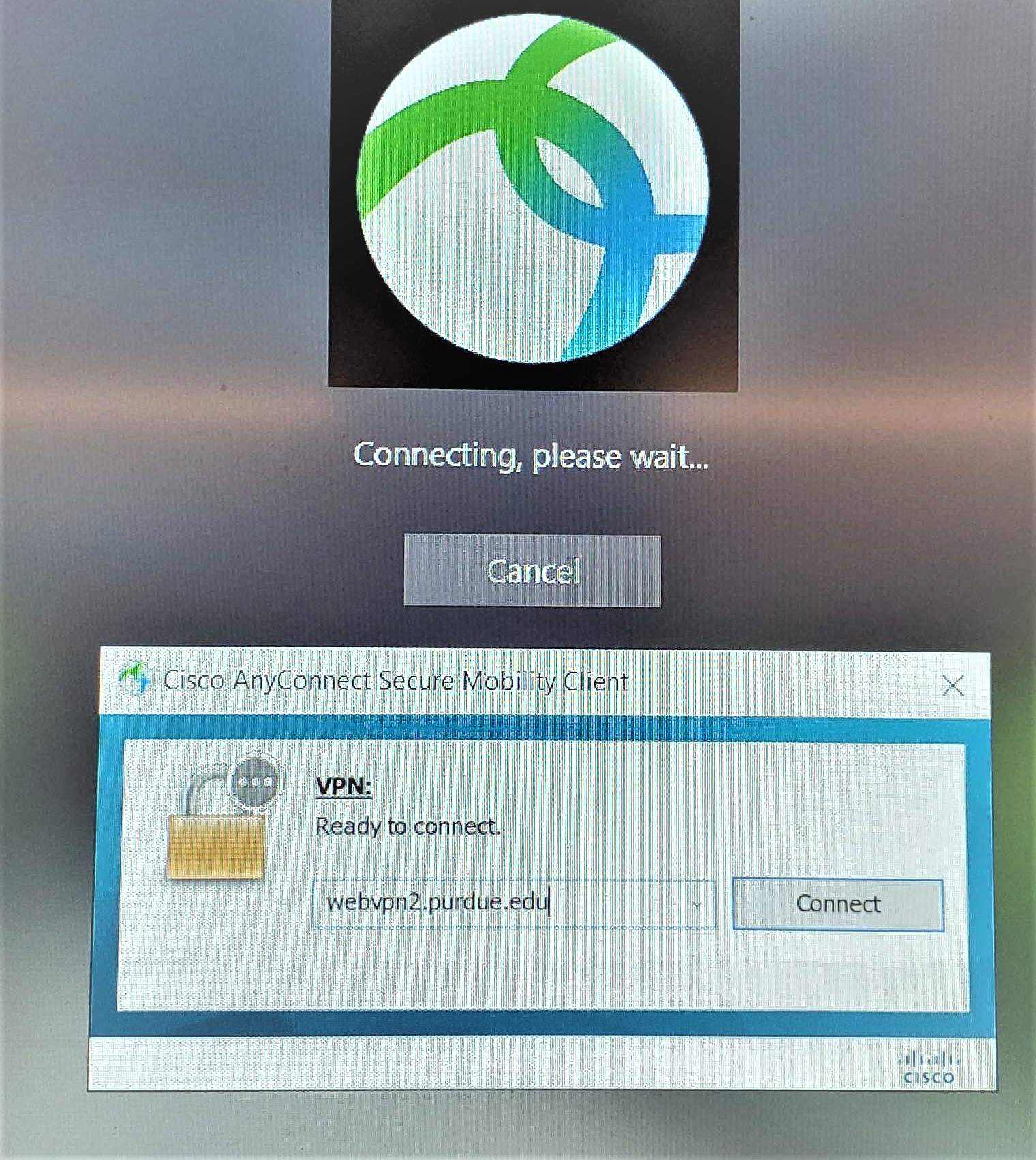 5) On Cisco AnyConnect Secure Mobile Client windows, type following: webvpn2.purdue.edu