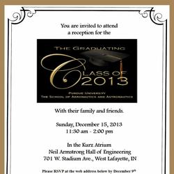 Prof. Steven Collicott's AAE418 "Zero-Gravity Flight Experiments" class submitted an original research proposal to NASA in October, 2013. It was announced on December 18, 2013 that they were selected by NASA's Reduced Gravity Education Flight Program as one of the best proposals submitted this year.