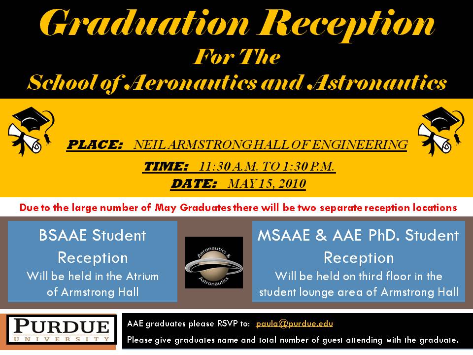 AAE May Graduates: Join Us for the 2010 Graduation Reception - May 15th 11:30A.M. to 1:30P.M. - Office of Professional Practice - Purdue University