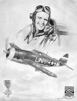 Assigned to the 8th Air Forces' 56th Fighter Group based in England and flying a P-47 Thunderbolt, he scored his first aerial victories in August 1943 by shooting down two German fighters while escorting B-17 bombers.
