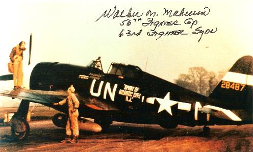 Mahurin enlisted in the Army Air Forces as an aviation cadet in September 1941 and was assigned to the 8th Air Forces' 56th Fighter Group based in England to fly a P-47 Thunderbolt. He scored his first aerial victories in August 1943 by shooting down two German fighters while escorting B-17 bombers. By October 1943, Mahurin had become an ace - signifying that he had downed five enemy aircraft.