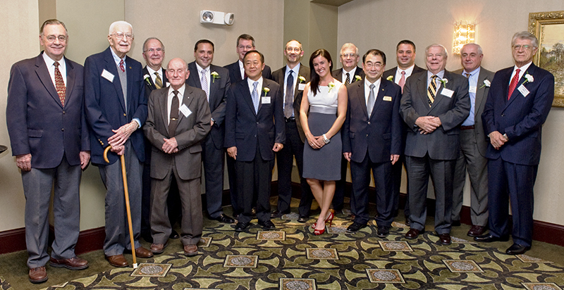Photos L~R Professor Emeritus 'Gus' Gustafson, Larry Cargino and George Palmer, Dr. Allen S. Novick OAE'06, Dr. Matthew Szolwinski, Mark Burgess, Leo Millstein, James Miller, Kathryn Gentz - widow of Joel Gentz, Douglas Bowers, Dr. Tom Shih, Jamie Renna, John Rich OAE'01, Ronnie Miller OAE' 03 and Andrew Simo OAE'07.