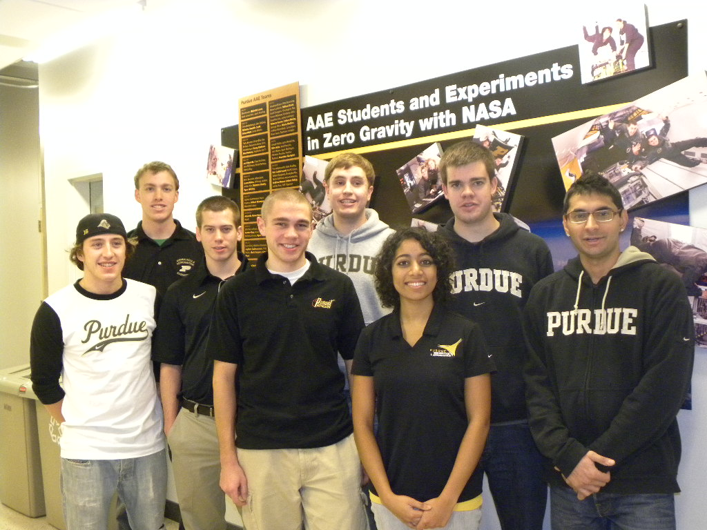 The team of Paul Frakes, Dan Kolenz, Mike McCarthy, David Lynch, Sirisha Bandla, Raj Dua, Austin Hasse, Matthew Hill, and Zachary Richardson is Purdue’s 45th successful team in NASA’s RGSFOP since the program began in 1996. Purdue undergraduate students have made Purdue the leader in participation in this competitive prestigious national program. The team has worked since August in experiment design, spacecraft propellant system details, K-12 outreach, proposal writing, and fabrication of prototypes to show the feasibility of the unique parts of the proposed experiment construction techniques.