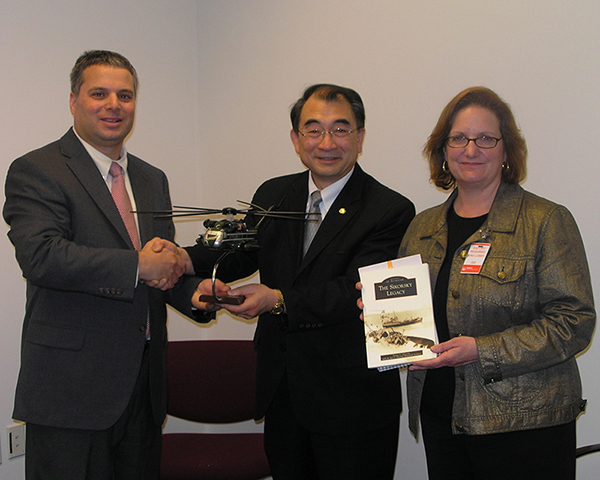 Pictured above left - Renna presented Dr Shih with a model of a Sikorsky CH-53E Super Stallion helicopter. This helicopter is now displayed on the 3rd floor in Armstrong Hall.