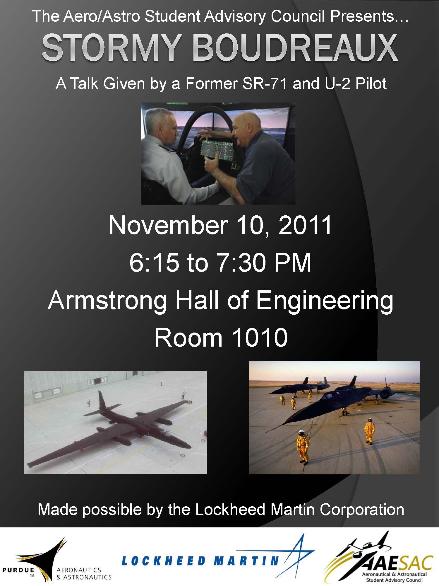 Stormy Boudreaux, Former SR-71 and U-2 Pilot, to give talk