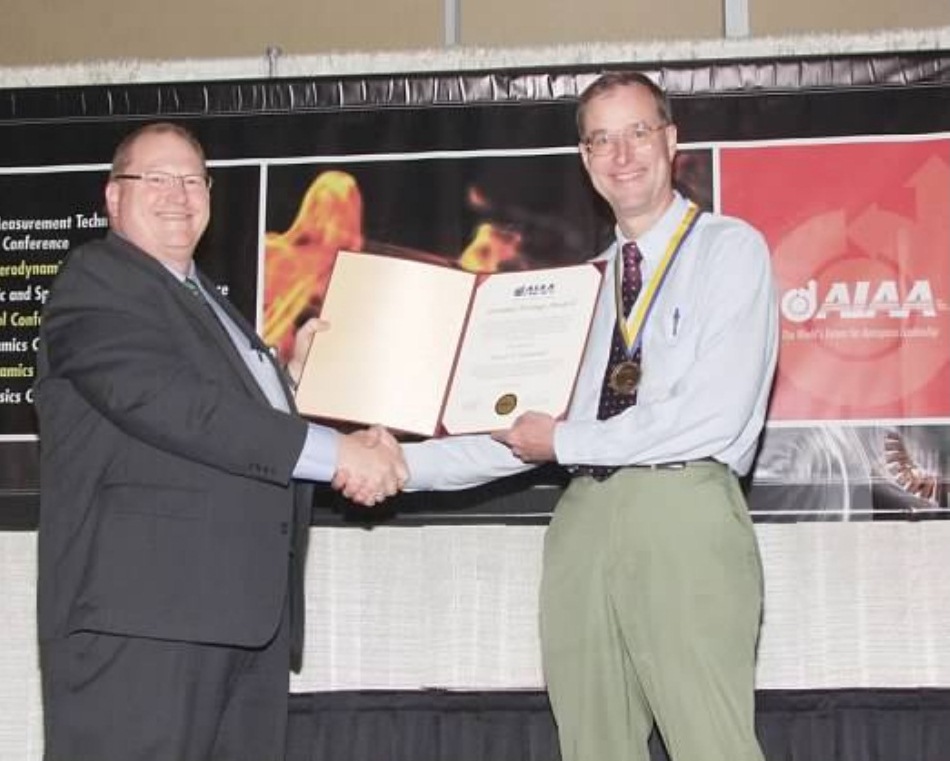 Both awards were presented at the 28th AIAA Aerodynamic Measurement Technology, Ground Testing, and Flight Testing Conference, 25-28 June 2012, in New Orleans, LA