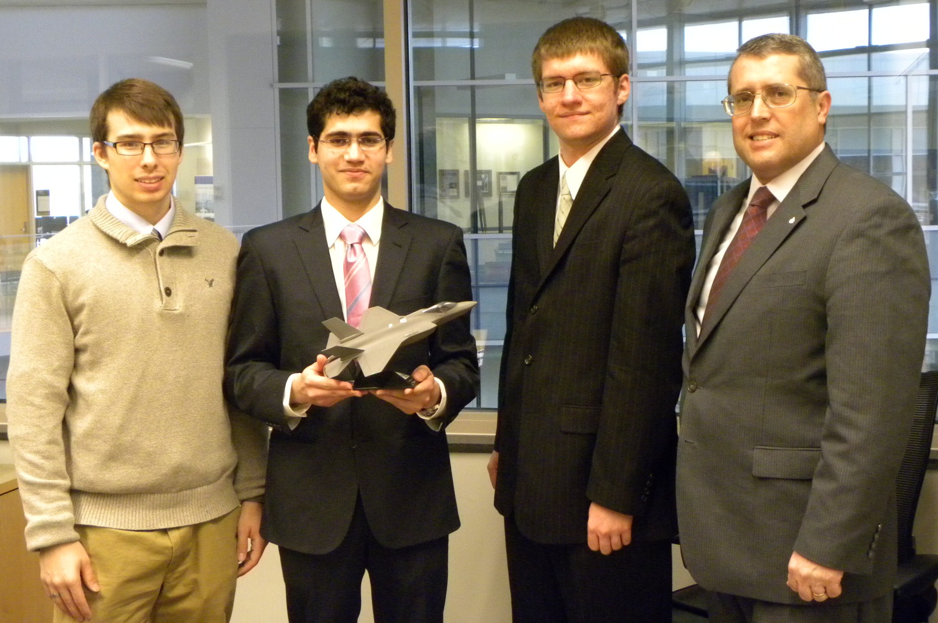 Top - Team Mach 4 pictured with David K. McGrath BSAAE'83, MSAAE'84, Director, Systems Engineer, Tactical Propulsion and Controls, ATK Elkton Operations