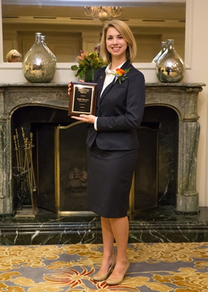 Purdue University School of Aeronautics and Astronautics undergraduate student Emily Zimovan was presented with the Women in Aerospace (WIA) Foundation and ATK Scholarship at the 29th Annual Women in Aerospace Awards on October 29, 2014. The awards ceremony took place at the Ritz Carlton Pentagon City Hotel in Arlington, Virginia.