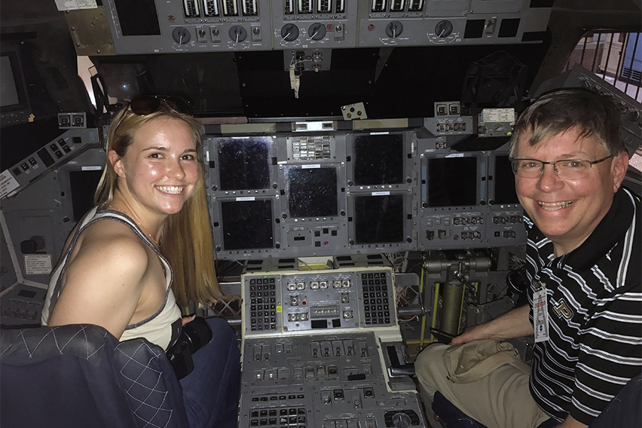 And though she’s made her own choices leading to this point, flirting with chemical engineering during her first year of engineering at Purdue before choosing AAE, Dad’s ongoing influence did play a role in her career path. And ultimately helped mold a special, award-winning student with a desire for developing solutions to help further our understanding of the universe by engineering the hardware for conducting and studying science in space.