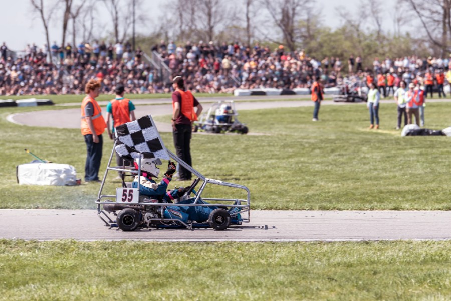 The Purdue Grand Prix race series sets a minimum weight for the kart, specifies the engine to be used, and outlines requirements for the kart chassis and roll cage. Kardashian had a borrowed car, a borrowed garage, and a few friends recruited for the team. Kardashian and his team made use of his racing experience and his training as an engineer to take advantage of the flexibility in the rule set. Together, they prepped the kart and themselves for the race.