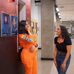 Thendral Kamal, a sophomore in the School of Aeronautics and Astronautics, met her Purdue Engineering hero, Sirisha Bandla, a member of Purdue University's Cradle of Astronauts.