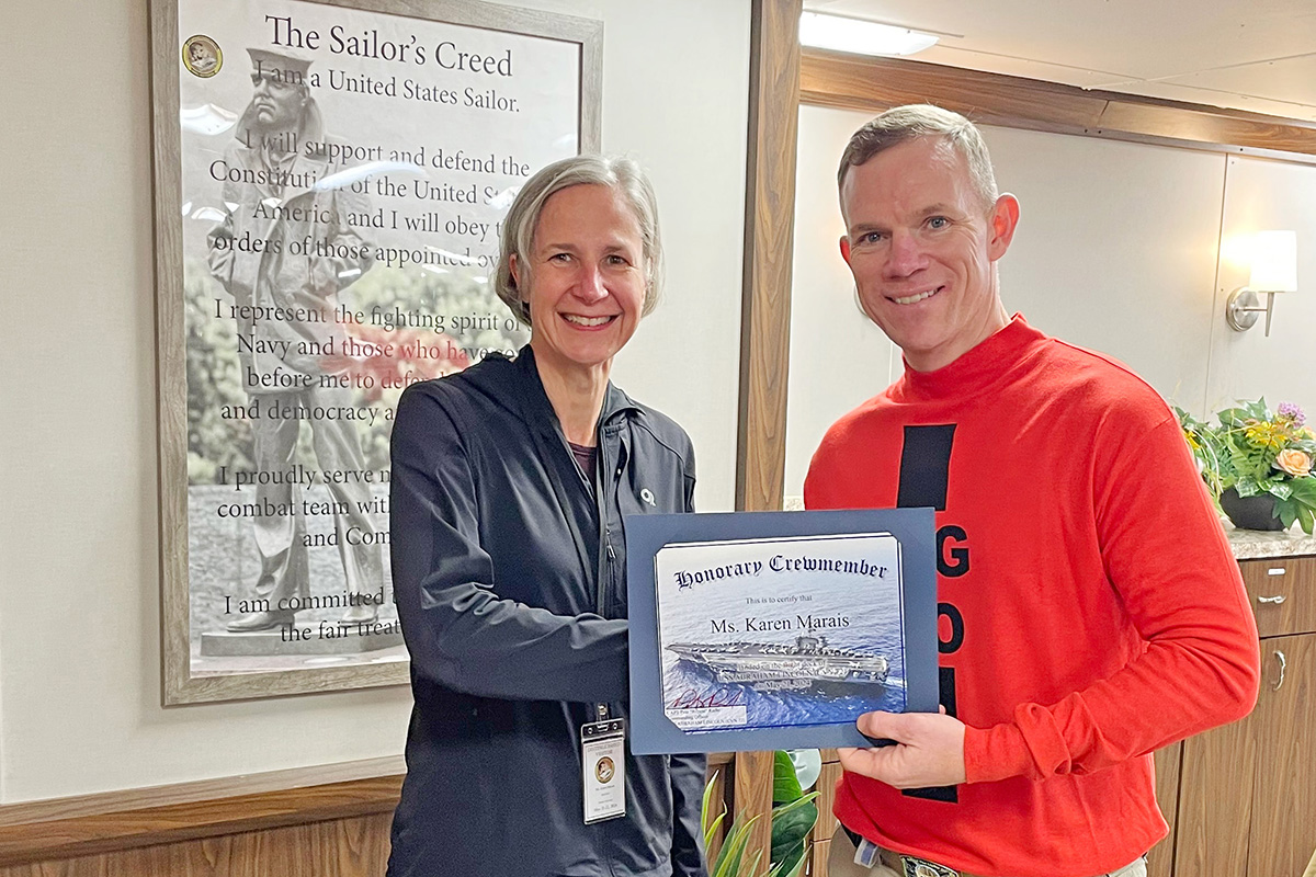 Pourpoint joined professors Karen Marais and Steve Son, plus Zucrow Labs managing director Scott Meyer and other Purdue representatives, on this eye-opening experience. Pourpoint described the crew, 95% of which is less than 25 years old, as having a huge sense of responsibility and pride for their work. “They make a nuclear aircraft carrier run, and they operate equipment to trap fighter jets every 50 seconds,” he says.