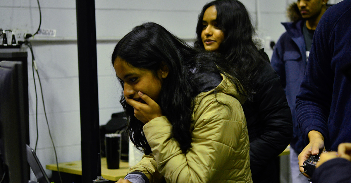 But the winners were neither of these. They were freshmen, First-Year Engineering students Samiya and Shriya Balu. Twin sisters, actually. They brought bright personalities and a competitive spirit to the hangar. They also pushed the flight envelope farther than other teams.