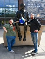 Haylee Queen-Link (Academic Advisor) and Tom Bietsch (Senior Design-Build-Test Engineer) show off their pumpkin with Neil!
