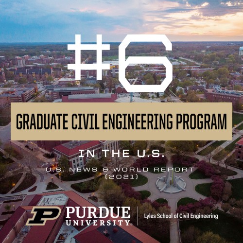 U.S. News & World Report has released its national rankings of graduate programs for 2021 with Purdue Civil Engineering ranked #6 in the nation. The graduate rankings are computed from the responses to a survey sent to deans, heads, and selected senior faculty.