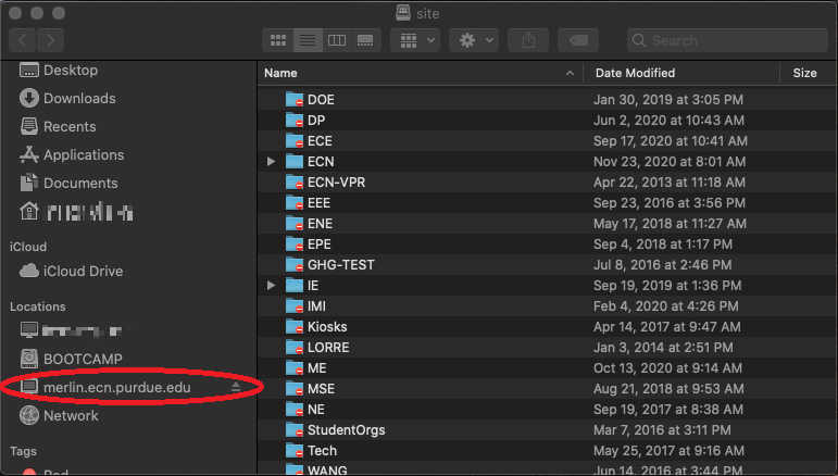 - Type exactly smb://ecn-merlin.ecn.purdue.edu/site for the server then click connect